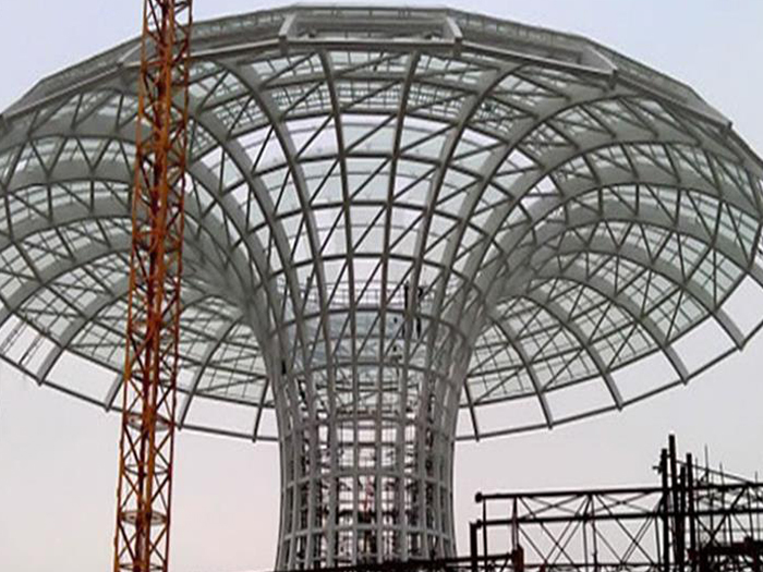 二、球形网架结构因其结构新颖,受力合理,自重轻、用钢量低等优点。如大型体育场馆球形赣州螺栓球网架、公共场馆球形网架、电厂赣州螺栓球网架、水泥工业球形网架、仓储物流球形网架、赣州干煤棚工业球形网架、赣州收费站赣州加油站球形网架、展览中心、影剧院、商场、航站楼、候车厅、工厂赣州车间、仓库、电视塔等球形螺栓球节点网架。国内球形网架结构主要分为:赣州焊接球节点网架及螺栓球节点网架两种。螺栓球节点网架其构件工厂内加工量较大,现场安装便捷,适用于现场工期紧,赣州施工条件、用电量受制约,网架形状复杂、赣州杆件定位困难的异形结构。螺栓球节点球形网架系统基本由赣州杆件、螺栓球、支撑支座等组成。按照节点形式可分为交叉赣州桁架体系、四角锥体系、三角锥体系等。支撑方式多为固定支座支撑。对于大面积、大跨度及有特殊受力或伸缩要求的网架结构可采用橡胶支座、滑移支座、球铰支座等支撑形式,以满足结构自身的受力稳定、均衡,便于内力释放等设计要求。
